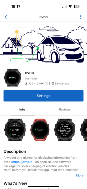 You can get help by posting in this thread on the evcc forum or by reaching out to the developer via the Contact Developer link on the app’s Connect IQ Store page.