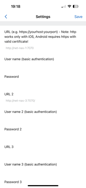 | URL | Enter the URL in the format: https://host:port or http://host:port. HTTP is only supported when your wearable is connected to an iOS device. Refer to the Connectivity section above for details. |