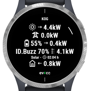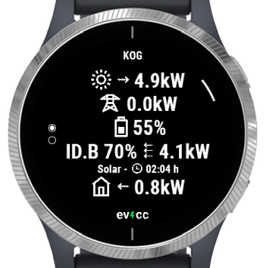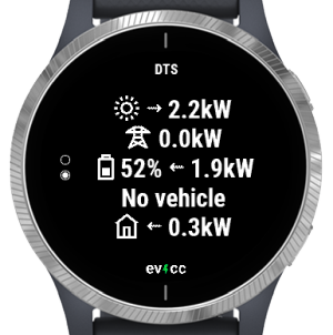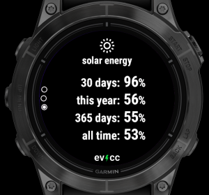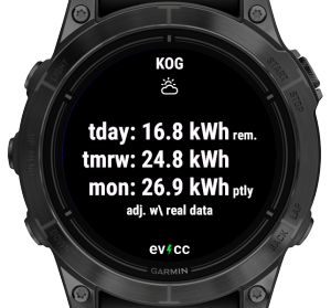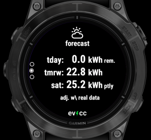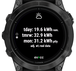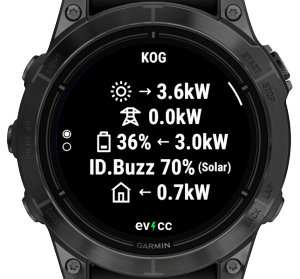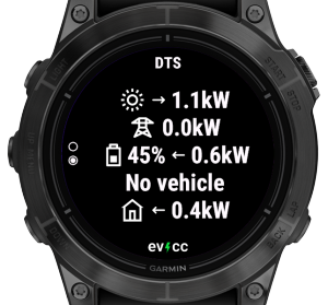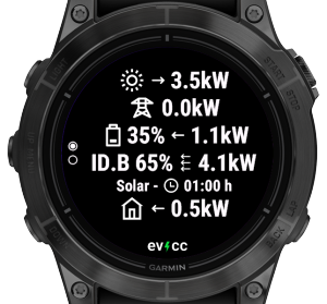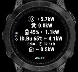 A Garmin widget that displays data from evcc, an open-source software solution for solar-powered EV charging.